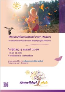 In deze workshop gaan we in op diverse thema’s die het opvoeden van (vermoedelijk) hoogbegaafde kinderen en jongeren tot een uitdaging kunnen maken. We merken dat ouders vaak met de handen in het haar zitten omdat de klassieke opvoedingsprincipes niet werken. Hierdoor botsen ze op heel wat onbegrip uit de omgeving of lijken ze er weleens alleen voor te staan. Daarom willen wij ouders met elkaar in contact brengen om te praten met gelijkgestemden over o.a. hoe je hoogbegaafdheid integreert in een verbindende opvoeding, hoe je kan omgaan met intense en extreme emoties en deze op een positieve manier kan inzetten in je opvoeding, we staan stil bij de schoolomgeving en eventueel faalangst en perfectionisme zodat jij als ouder opnieuw op een positieve verbindende manier kan genieten van jouw kind/tiener.